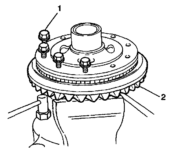 ^ Tighten the ring gear bolts to 90 Nm (65 ft. lbs.).