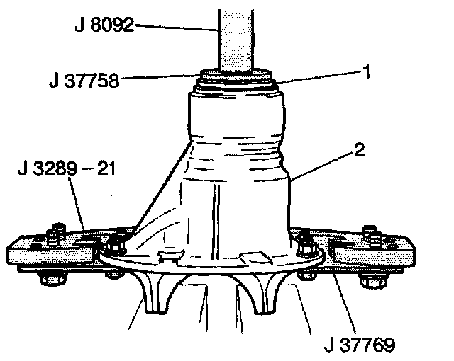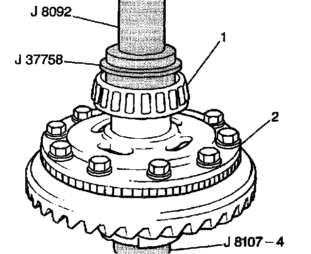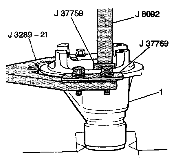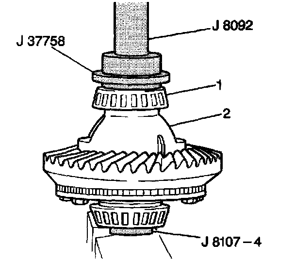 30. Install the outer pinion bearing race (1) using the J37758 with the J8092.