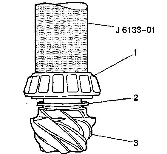 35. Install the pinion bearing (1) onto the pinion gear shaft. Use the J6133-01.
