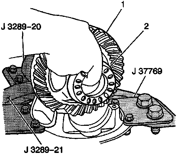 Important: After the correct end play and preload has been obtained, remove the ring gear bolts and apply GM P/N 12345493, or the equivalent, to the threaded portion of each ring gear bolt and install into the differential case assembly.