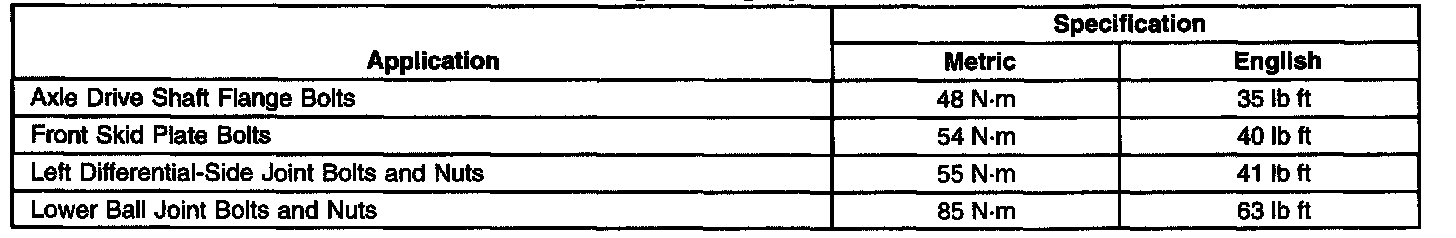 Axle Shaft Assembly: Specifications
