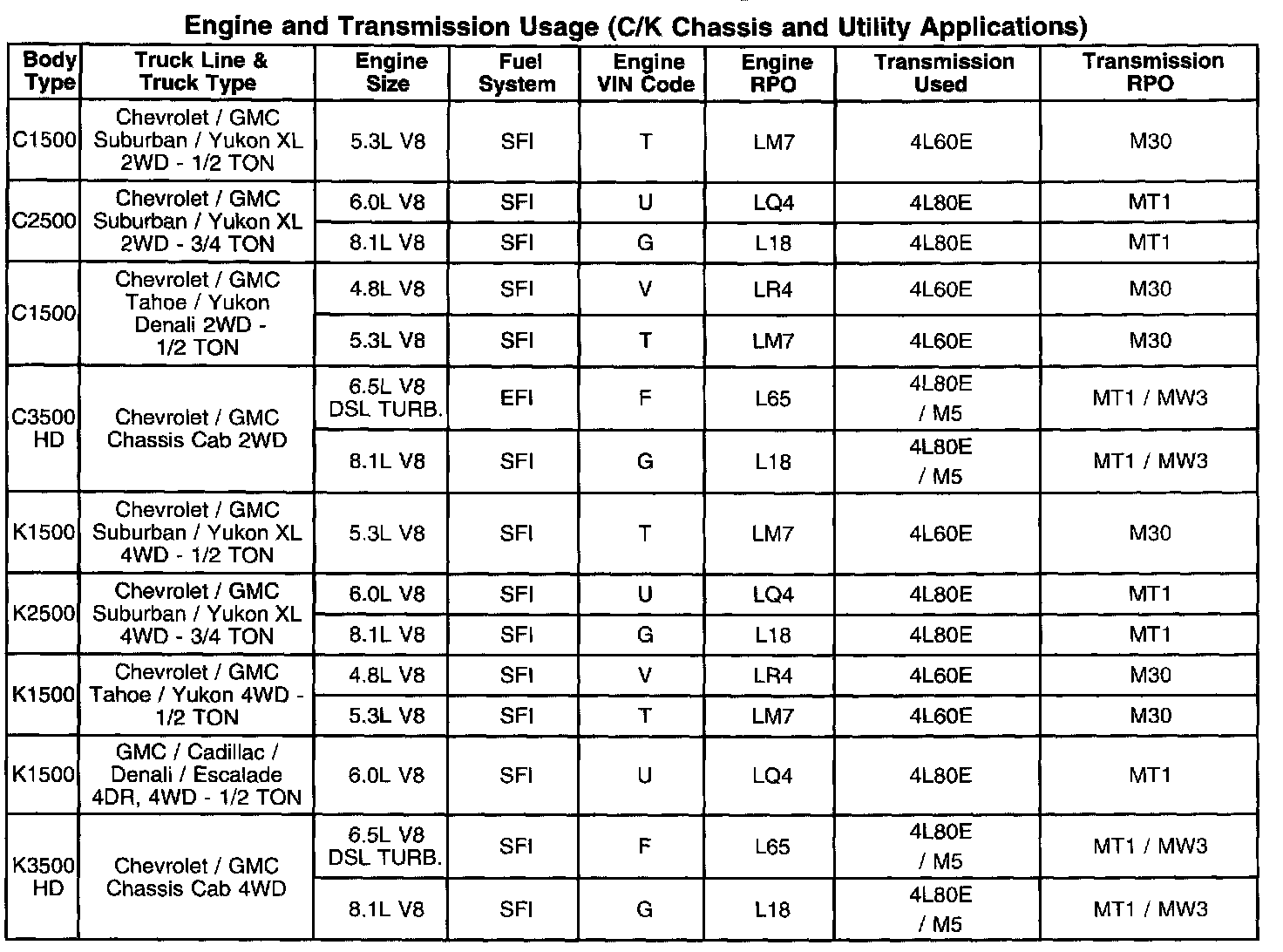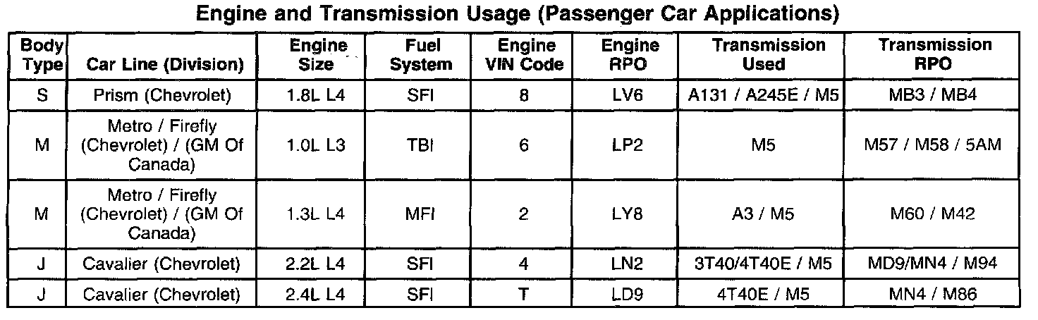 Manual Transmission/Transaxle: Application and ID