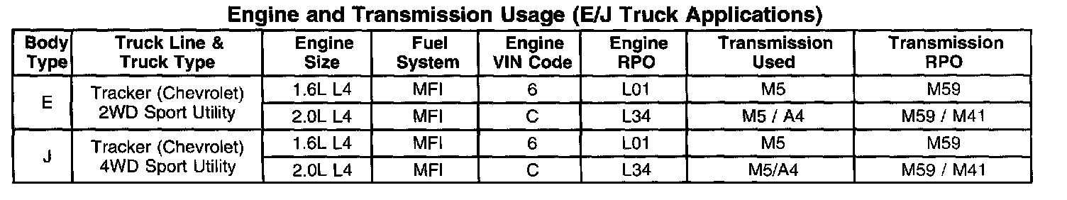 Tracker 2WD L4-2.0L VIN C