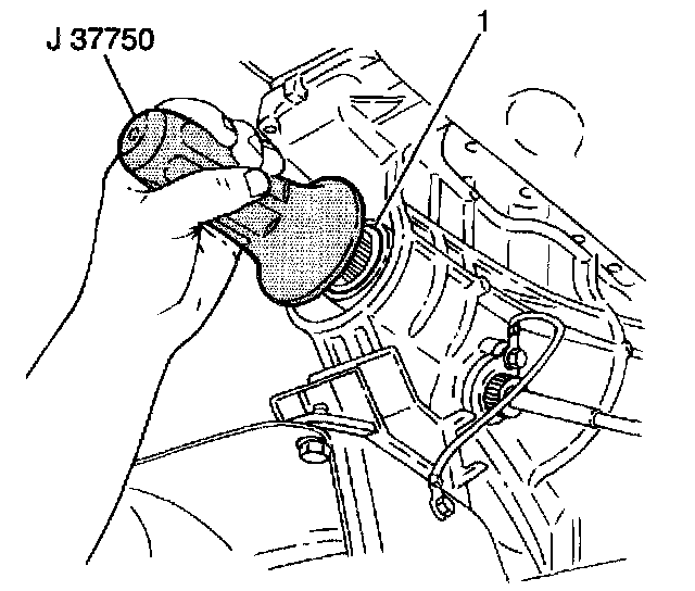 1. Install the new extension case oil seal (1) into the extension case using a J37750 and a hammer.