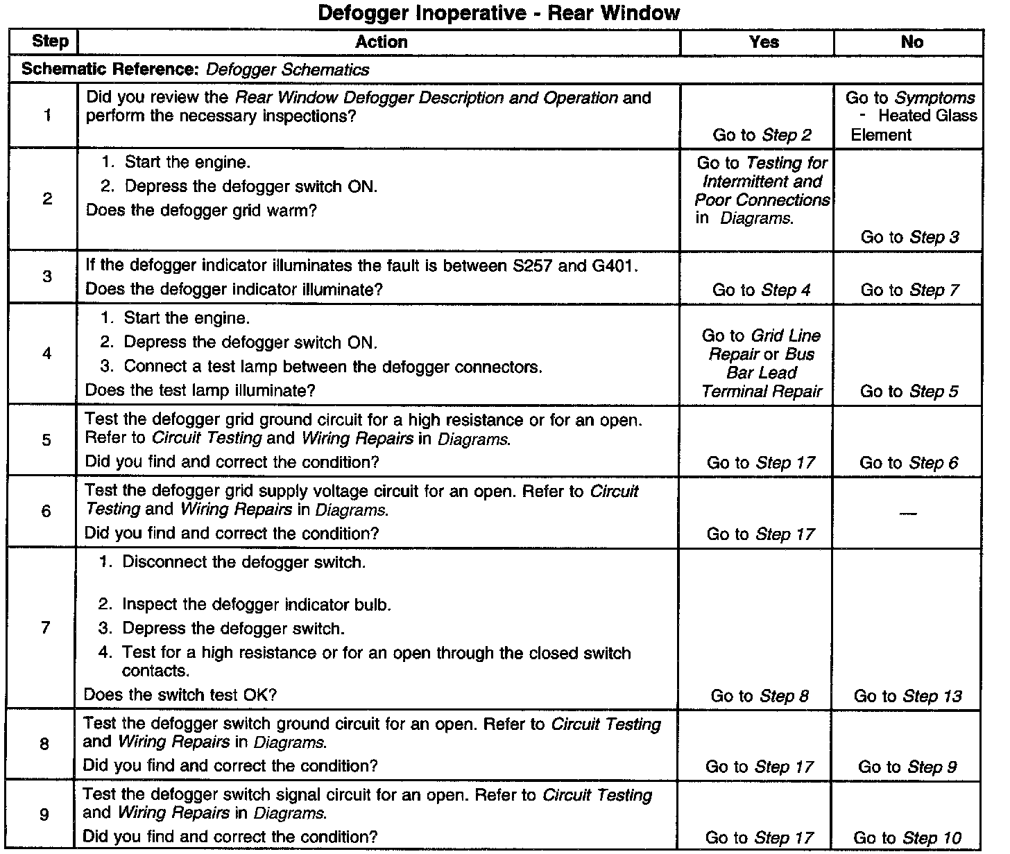 Defogger Inoperative - Rear Window