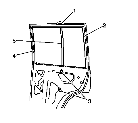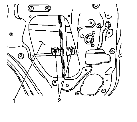 1. Remove the rear side door water deflector. Refer to Rear Side Door Water Deflector Replacement (Service and Repair) .
