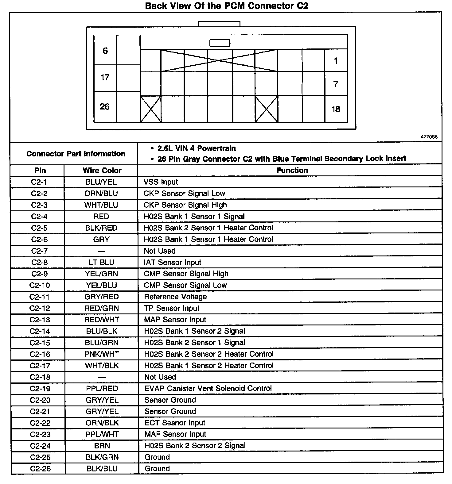 Back View Of The PCM Connector C2: