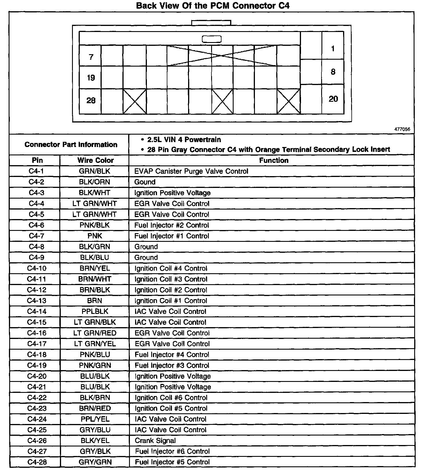 Back View Of The PCM Connector C4: