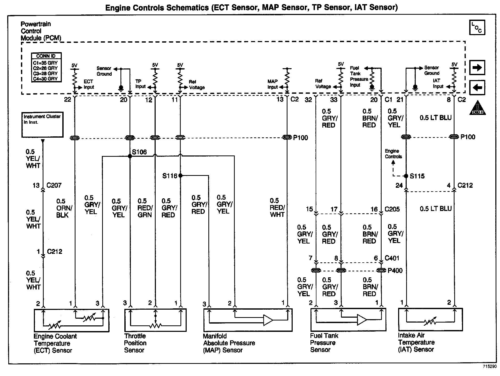 Engine Controls Schematics: ECT Sensor, MAP Sensor, TP Sensor, IAT Sensor: