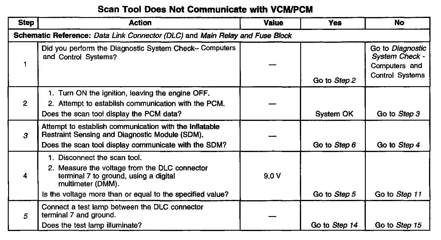 3. This step checks whether the scan tool can communicate with other control modules on the vehicle. If the scan tool can communicate with one of the other modules then the DLC connector, the shared circuits, and the scan tool are OK.