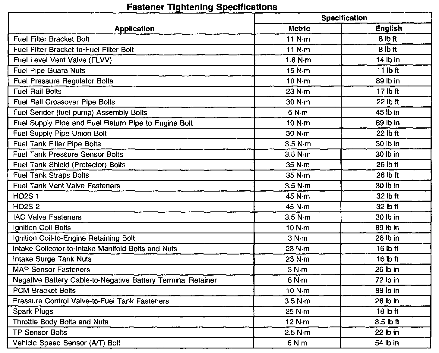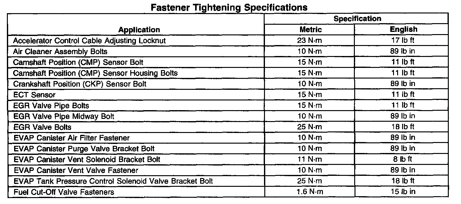 Fastener Tightening Specifications (Part 1 Of 2):