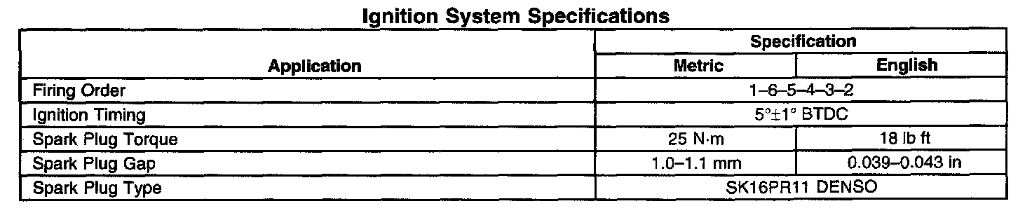 Ignition System Specifications: