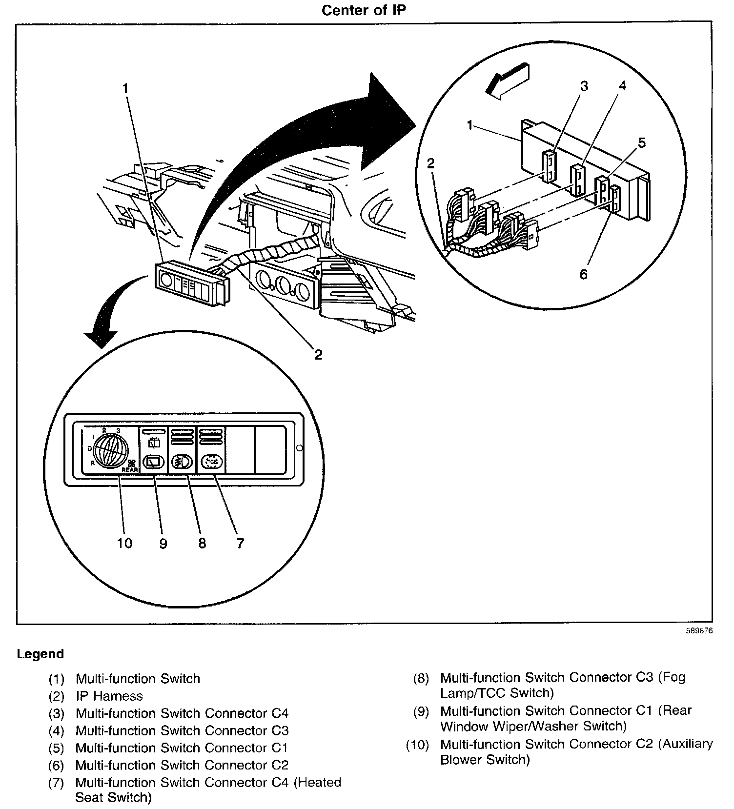 Part of the rear window wiper/washer and multi-function switch