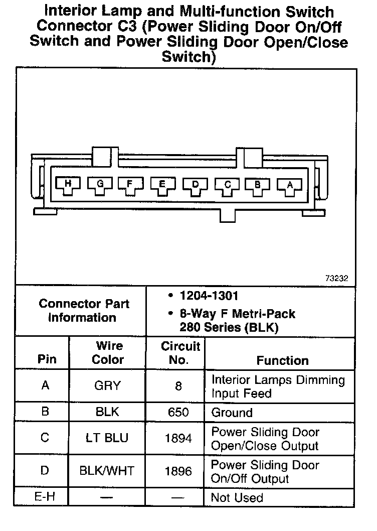 Interior Lamp and Multi-function Switch Connector C3 (Power Sliding Door On/Off Switch and Power Sliding Door Open/Close Switch):