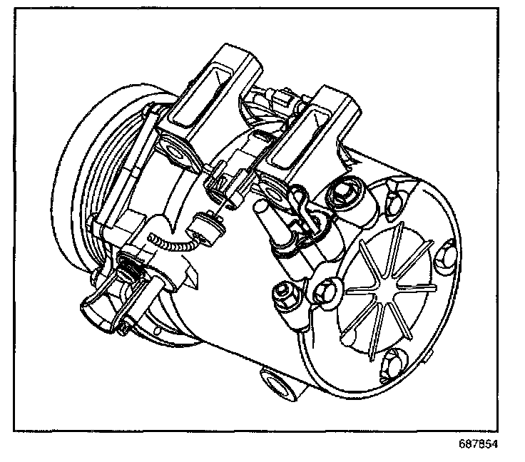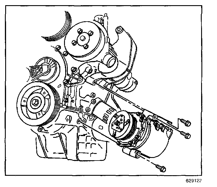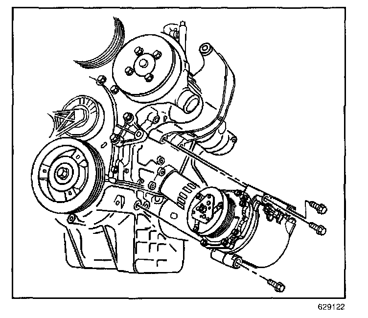 IMPORTANT: The A/C compressor is accessed through the right wheel opening.
