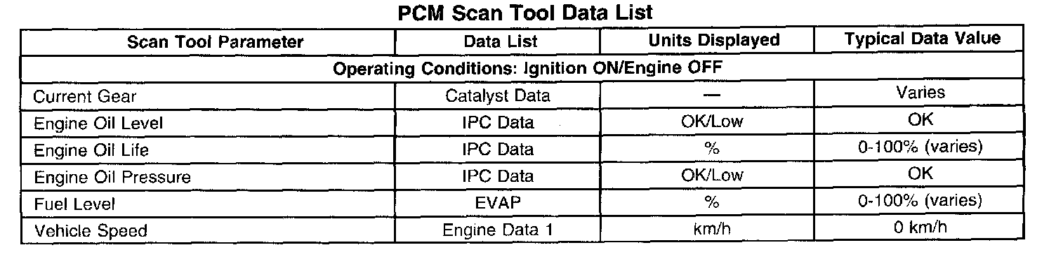 Scan Tool Data List - Powertrain Control Module (PCM)