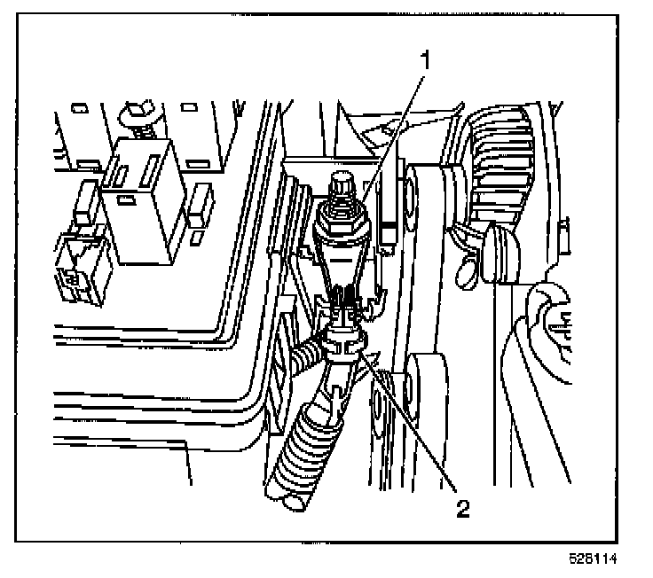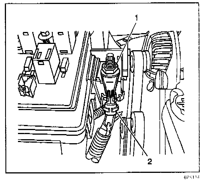 7. Remove the nut (1) retaining the positive battery cable to the underhood electrical center.
