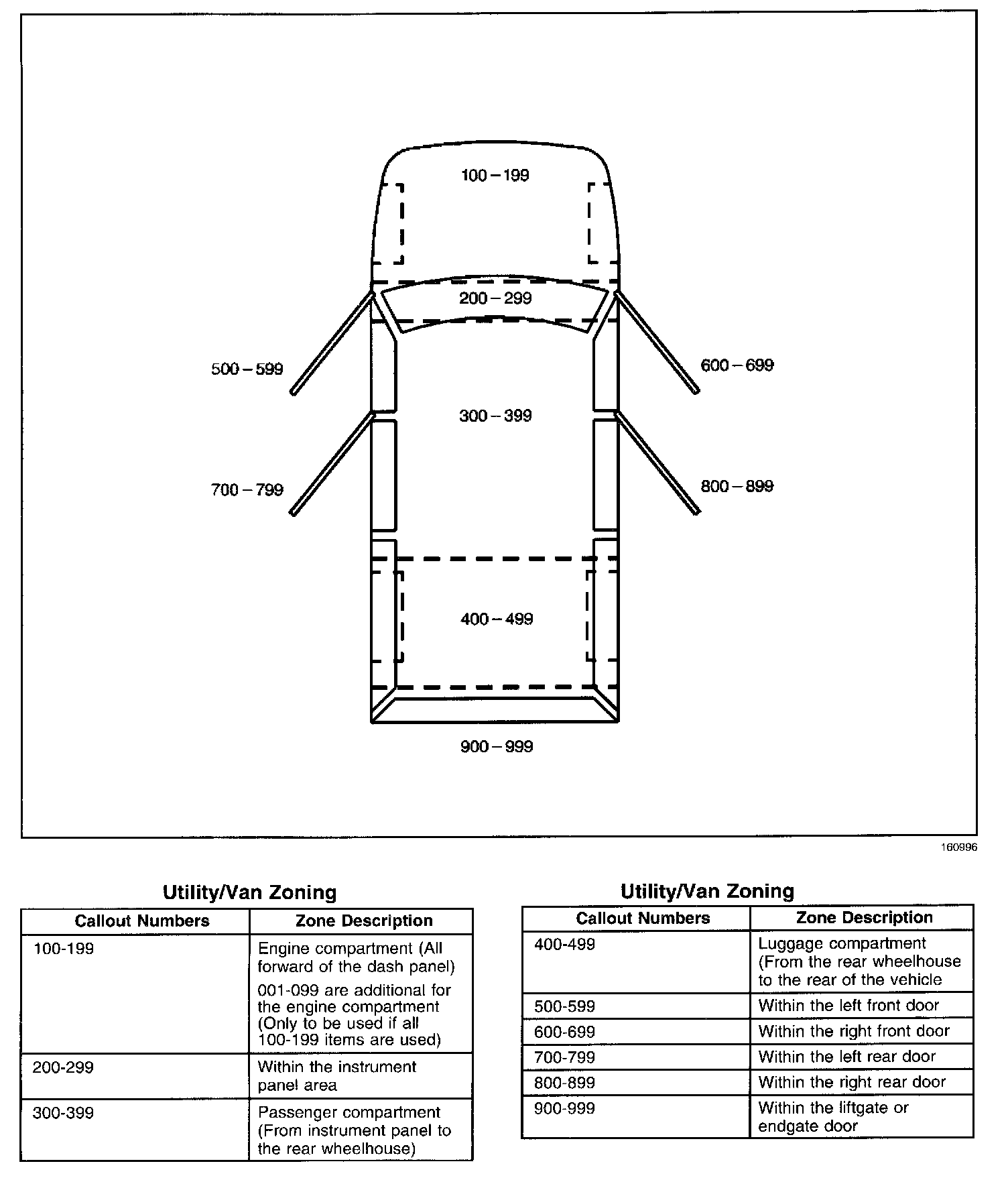 All grounds, in-line connectors, pass-through grommets, and splices have identifying numbers that correspond to where they are located in the vehicle. The following table explains the numbering system.