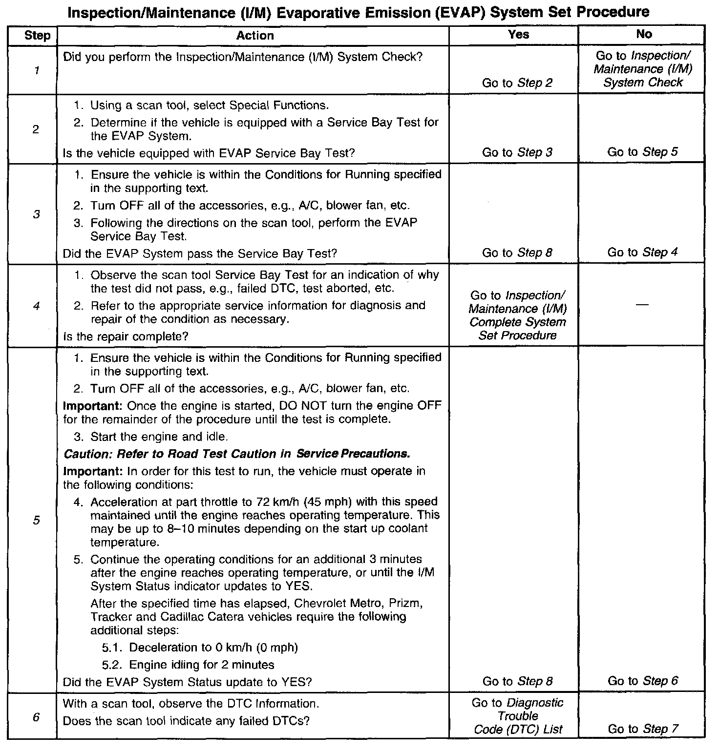 Inspection/Maintenance (I/M) (EVAP) System Set Procedure