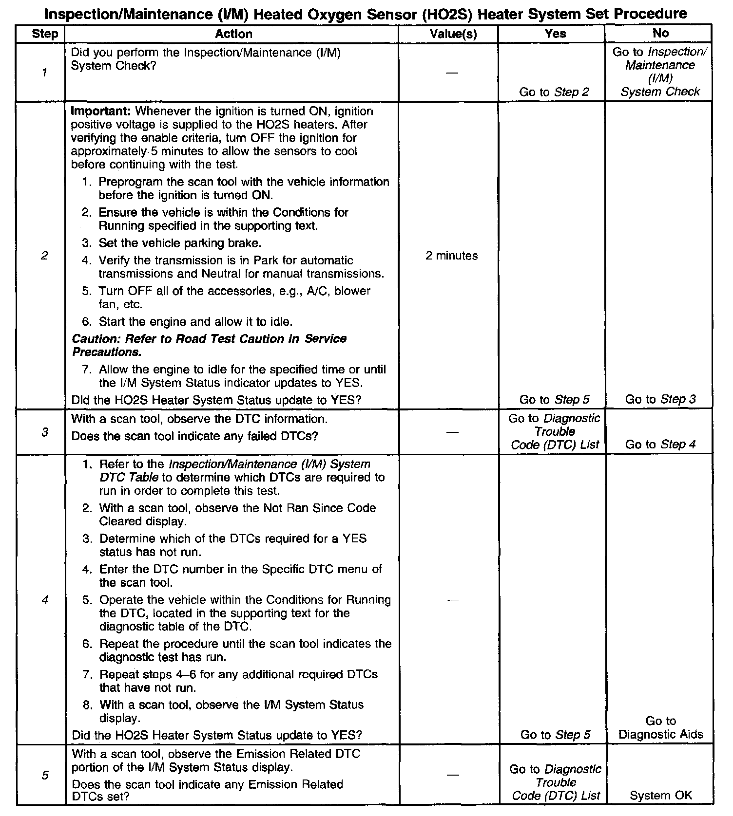 Inspection/Maintenance (I/M) (HO2S) Heater System Set Procedure