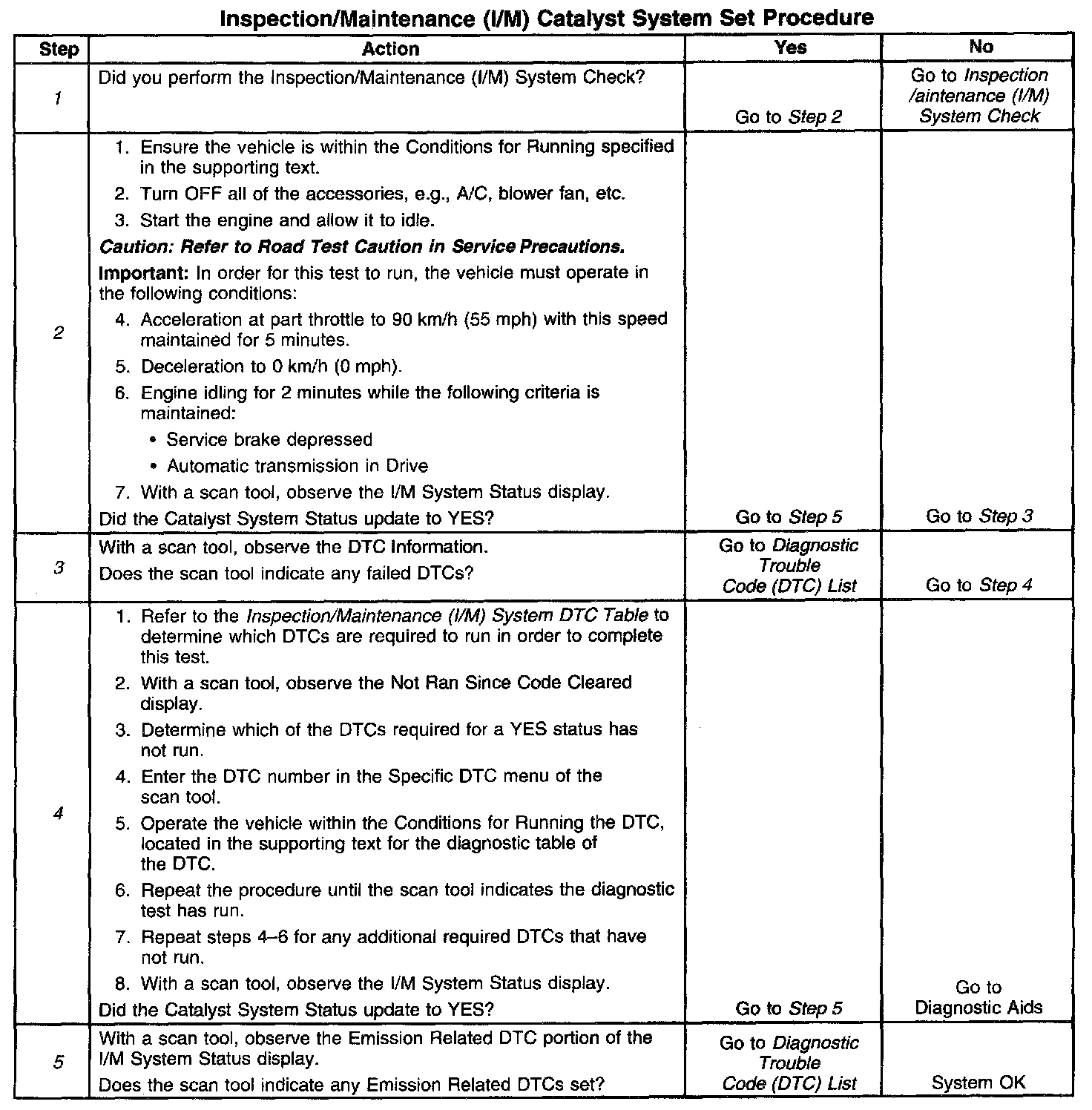Inspection/Maintenance (I/M) Catalyst System Set Procedure