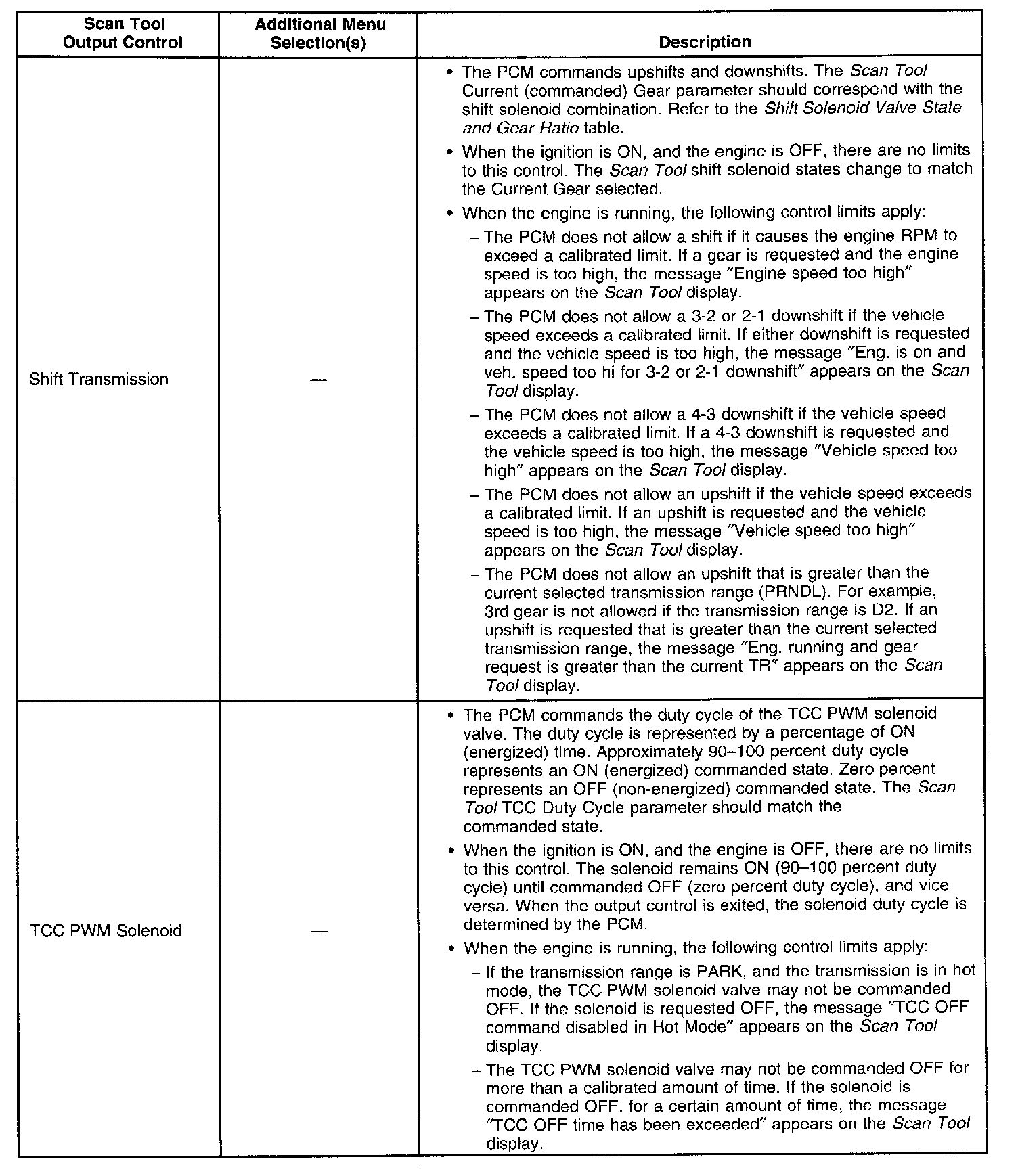 Scan Tool Output Controls