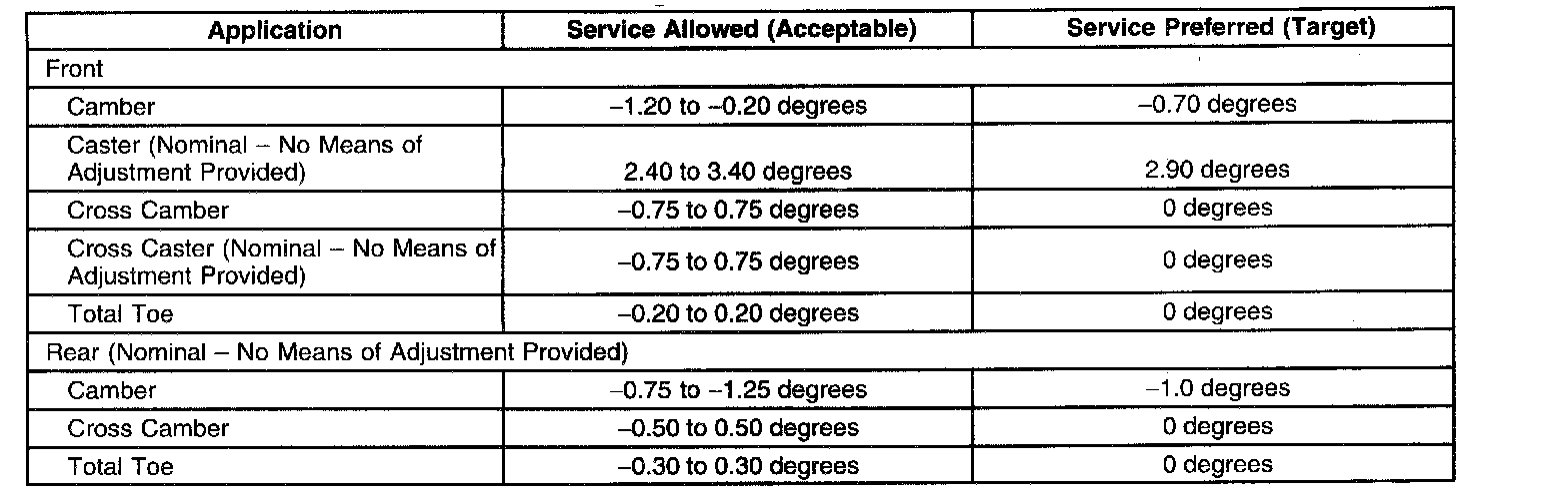 Wheel Alignment Specifications