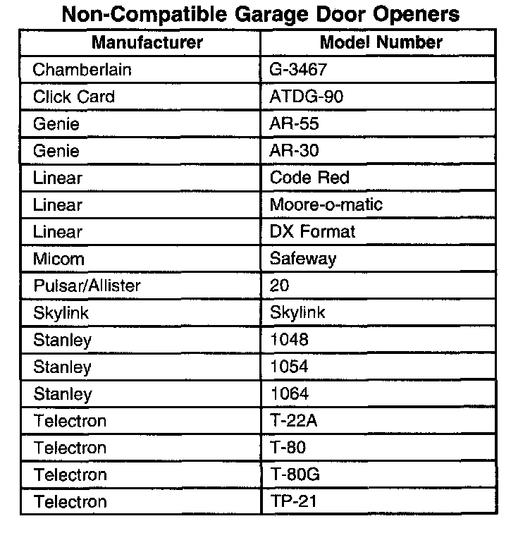 Non-Compatible Garage Door Openers: