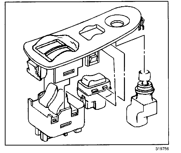 1. Install the power window switch to the switch mounting plate.