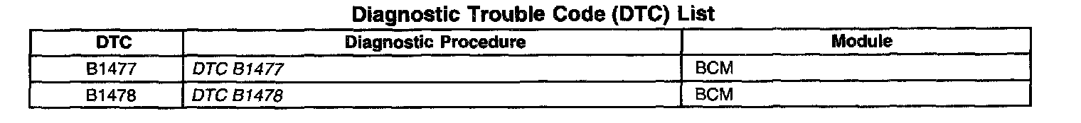 Diagnostic Trouble Code (DTC) List: