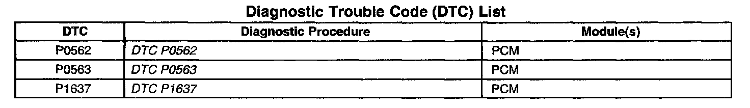 Diagnostic Trouble Code (DTC) List: