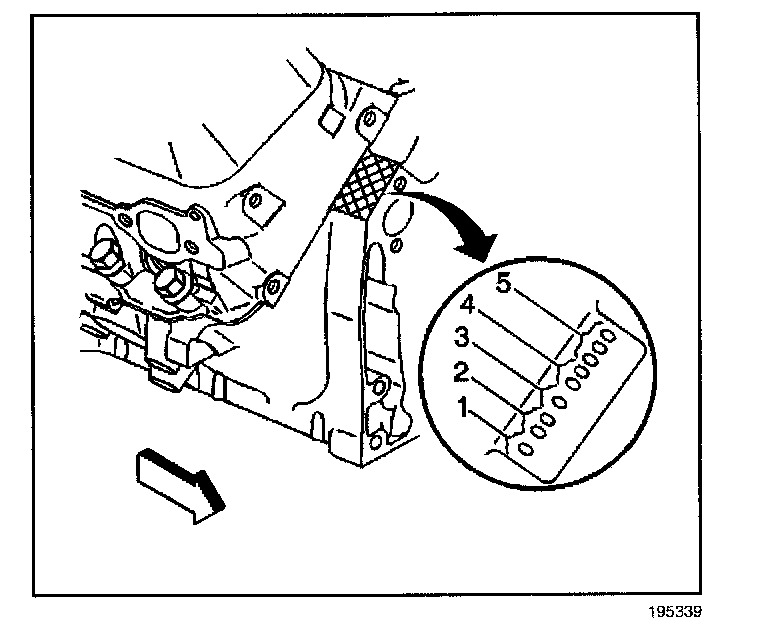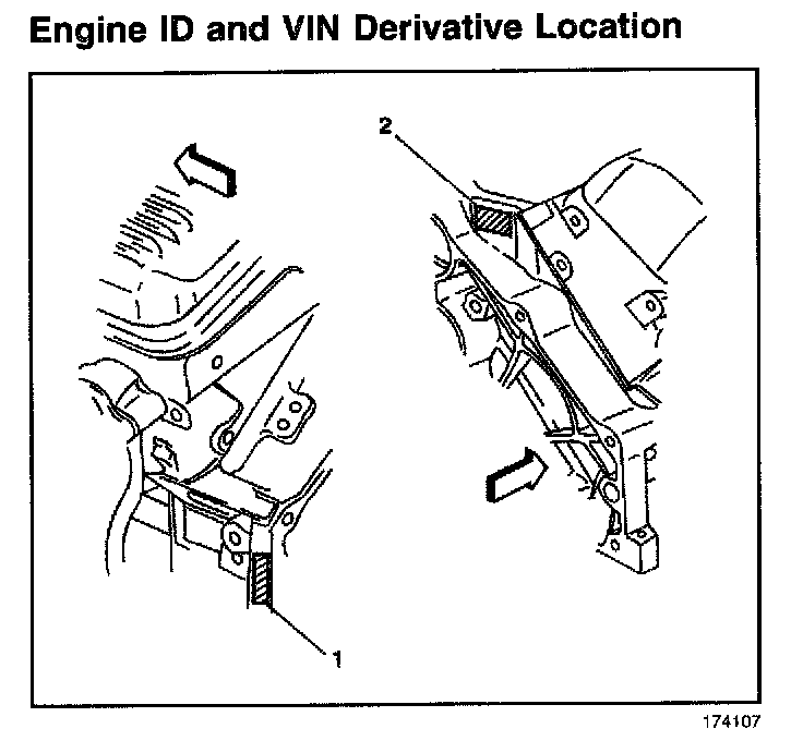 ^ The Vehicle Identification Number (VIN) Derivative is located on the left side rear of the engine block (1) or on the right side rear (2) and typically is a nine digit number stamped or laser etched onto the engine at the vehicle assembly plant.