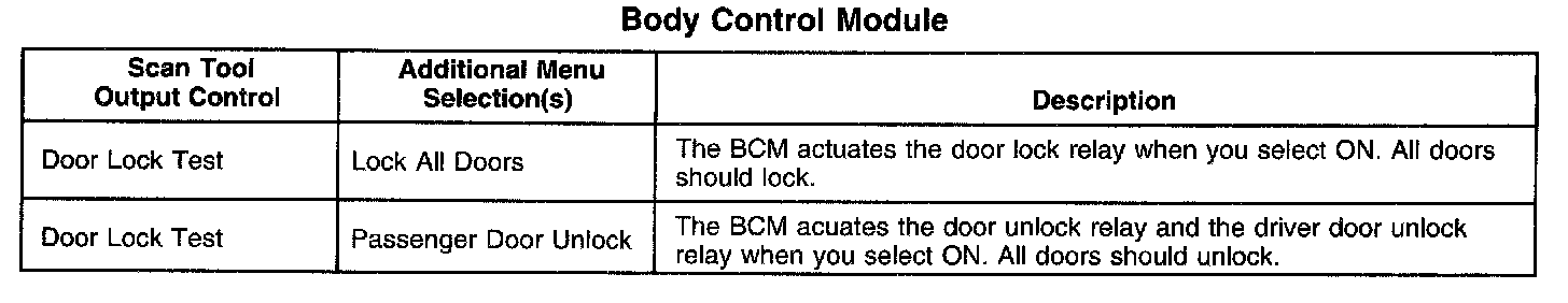Scan Tool Output Controls - Body Control Module (BCM)