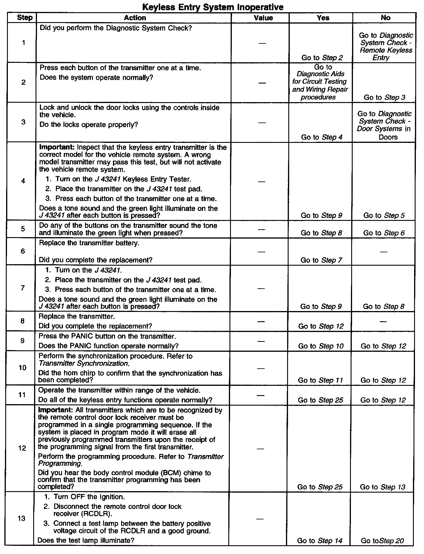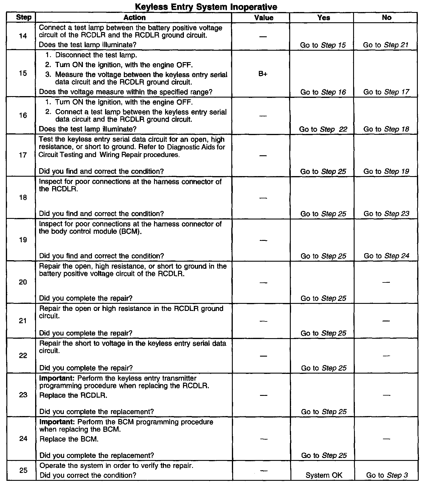 Keyless Entry System Inoperative