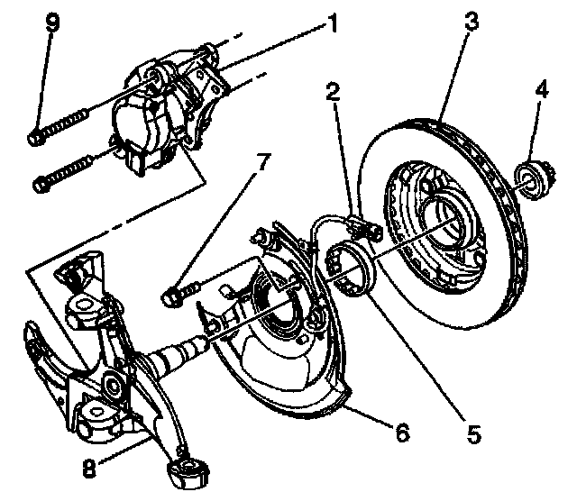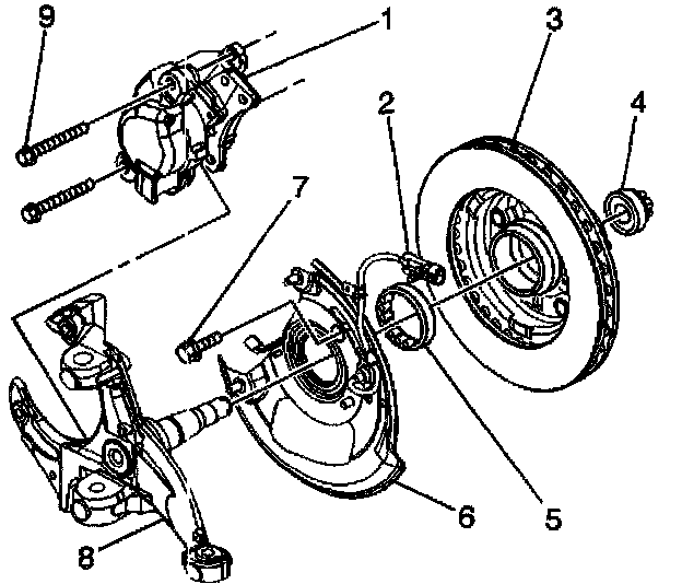 10. Remove the wheel speed sensor and the splash shield assembly (6).