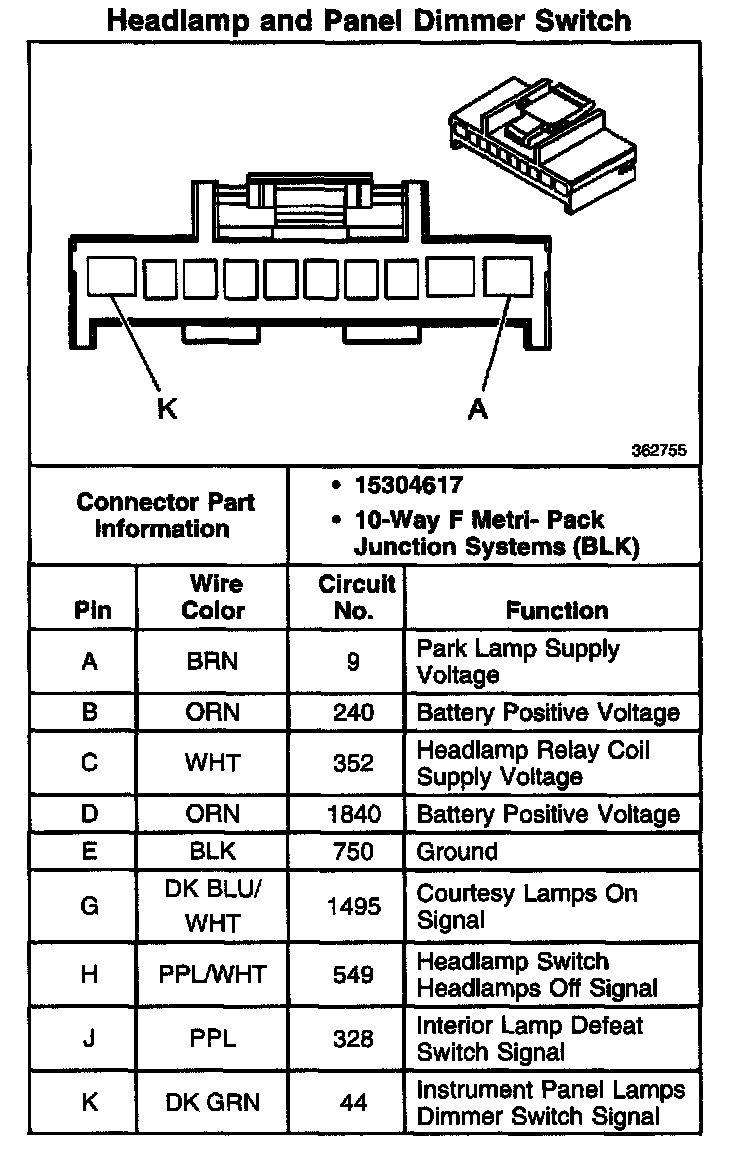 Headlamp And Panel Dimmer Switch: