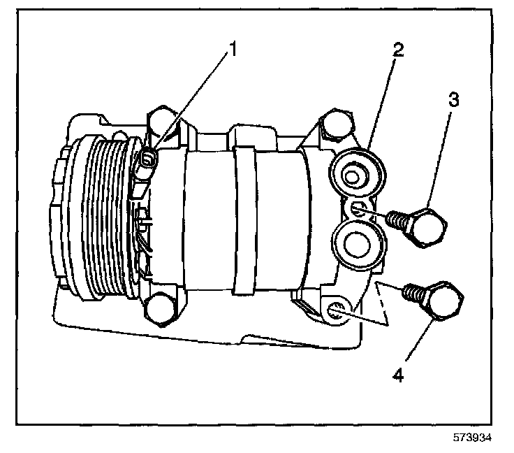 3. Remove the compressor hose assembly bolt (3) from the compressor.