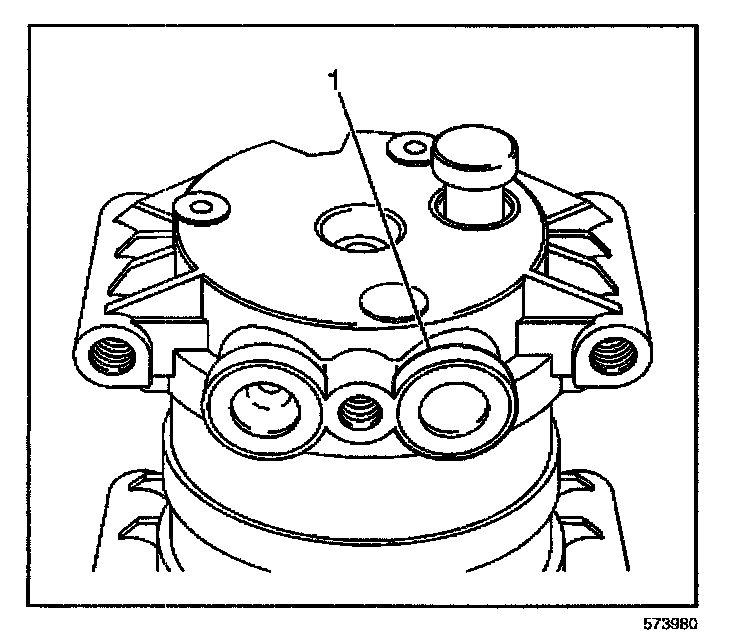 4. Remove the compressor hose assembly (7) from the compressor in order to expose the sealing washers.