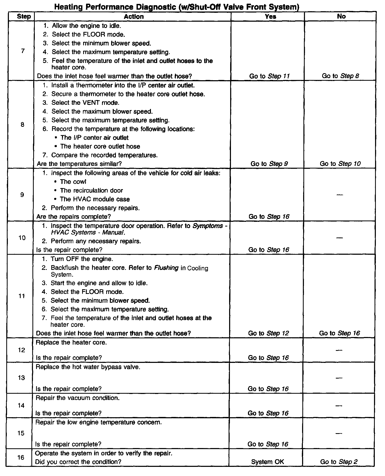 Heating Performance Diagnostic