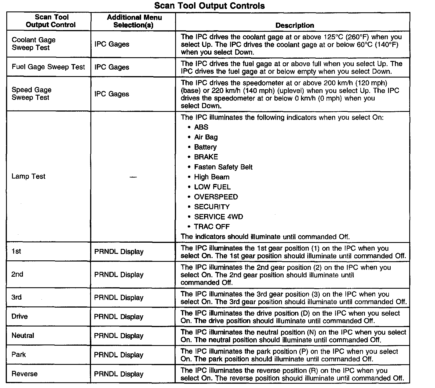 Scan Tool Output Controls: