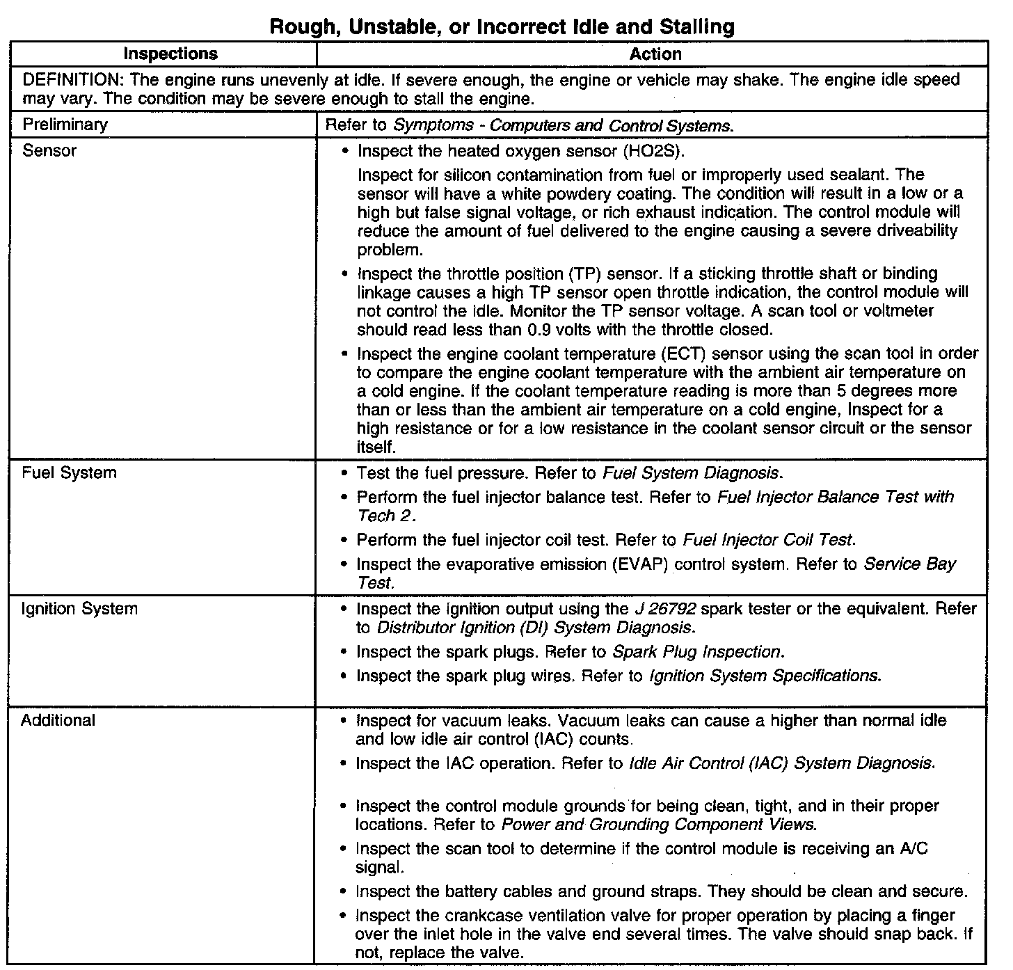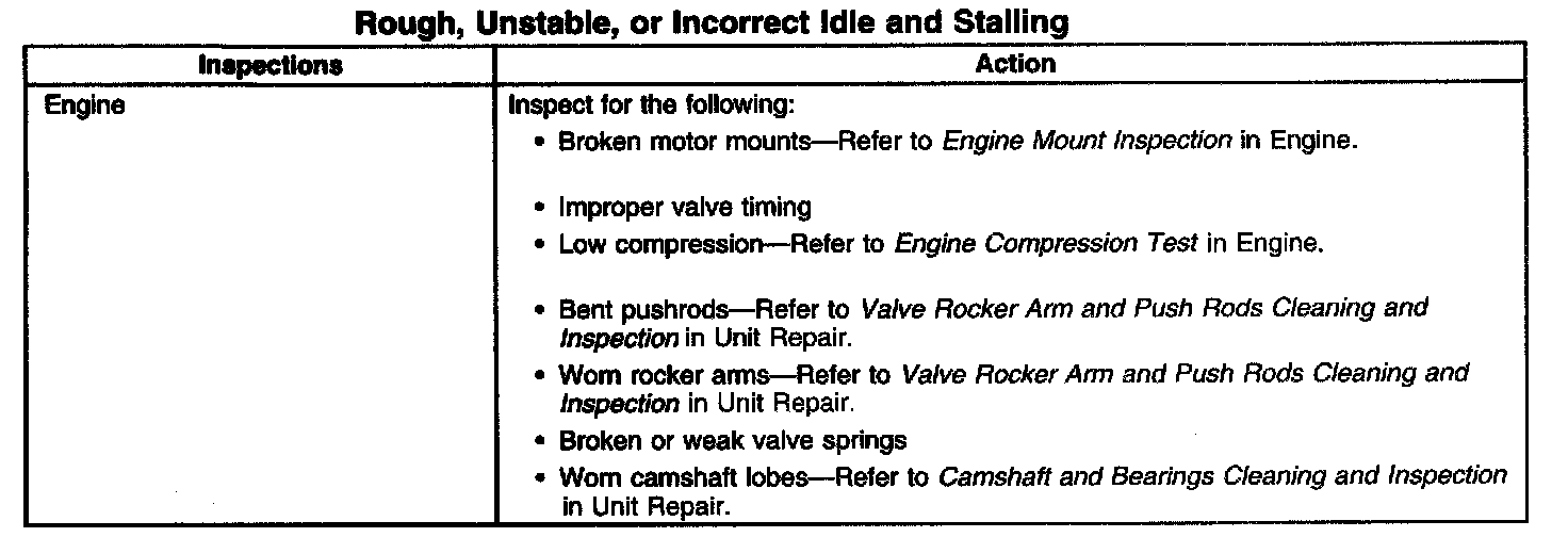 Rough, Unstable, or Incorrect Idle and Stalling