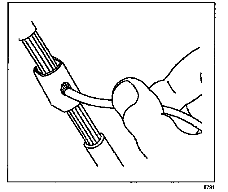 ^ Strip approximately 7.5 mm (5/16 in) of insulation from each wire to be spliced.