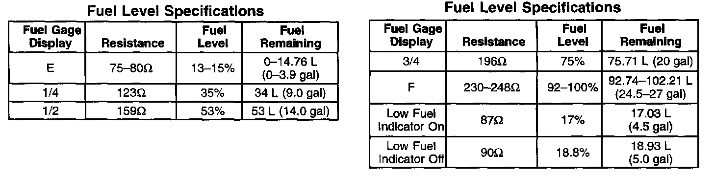 The values in the table are approximate values based on information obtained from properly operating vehicles. Actual results may vary slightly.