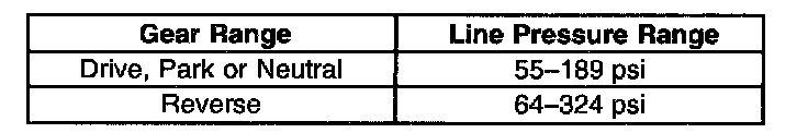 Refer to the Line Pressure. The pressures in the table assume an engine speed of 1,500 RPM and a temperature of 66°C (150°F). The pressure will vary with a change in temperature.
