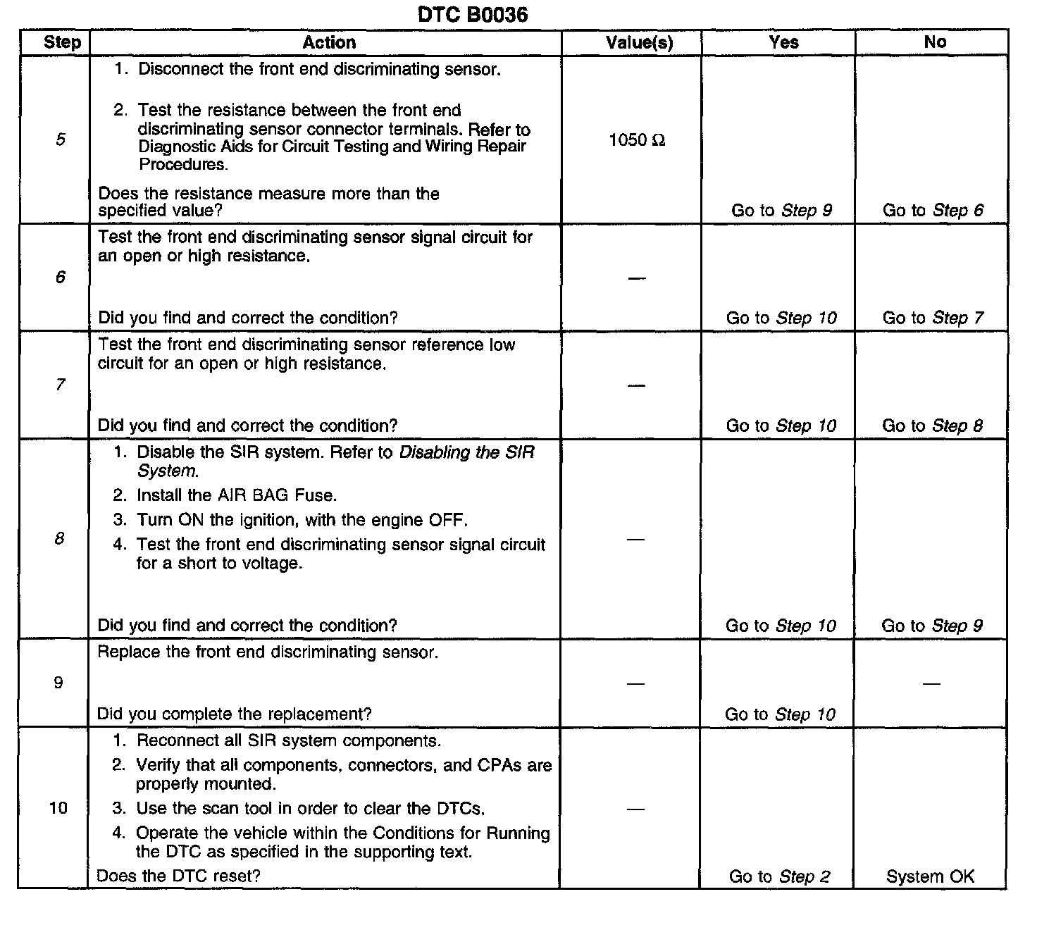 6. Tests for an open or high resistance in the front end discriminating sensor signal circuit.