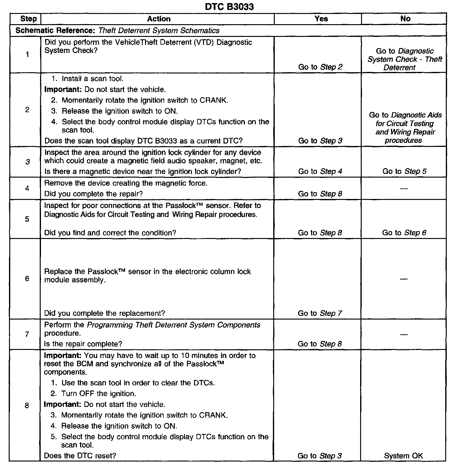 ^ Inspect the Passlock(TM) sensor harness for intermittent or poor connections. Refer to Testing for Intermittent and Poor Connections in Diagnostic Aids.