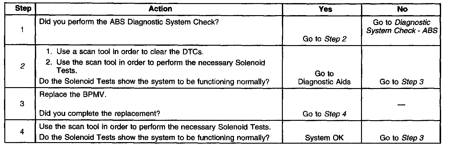 2. Performing solenoid tests determines if there is a mechanical malfunction inside the BPMV. Perform dump valve solenoid tests for DTC C0269 or isolation valve solenoid tests for DTC C0274.
