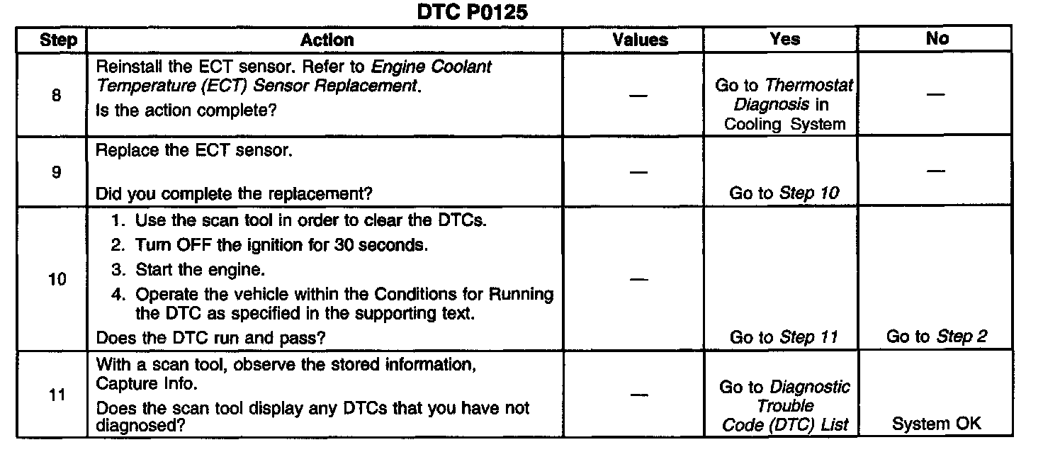 DTC P0125 is designed to detect a skewed ECT sensor or a faulty thermostat.