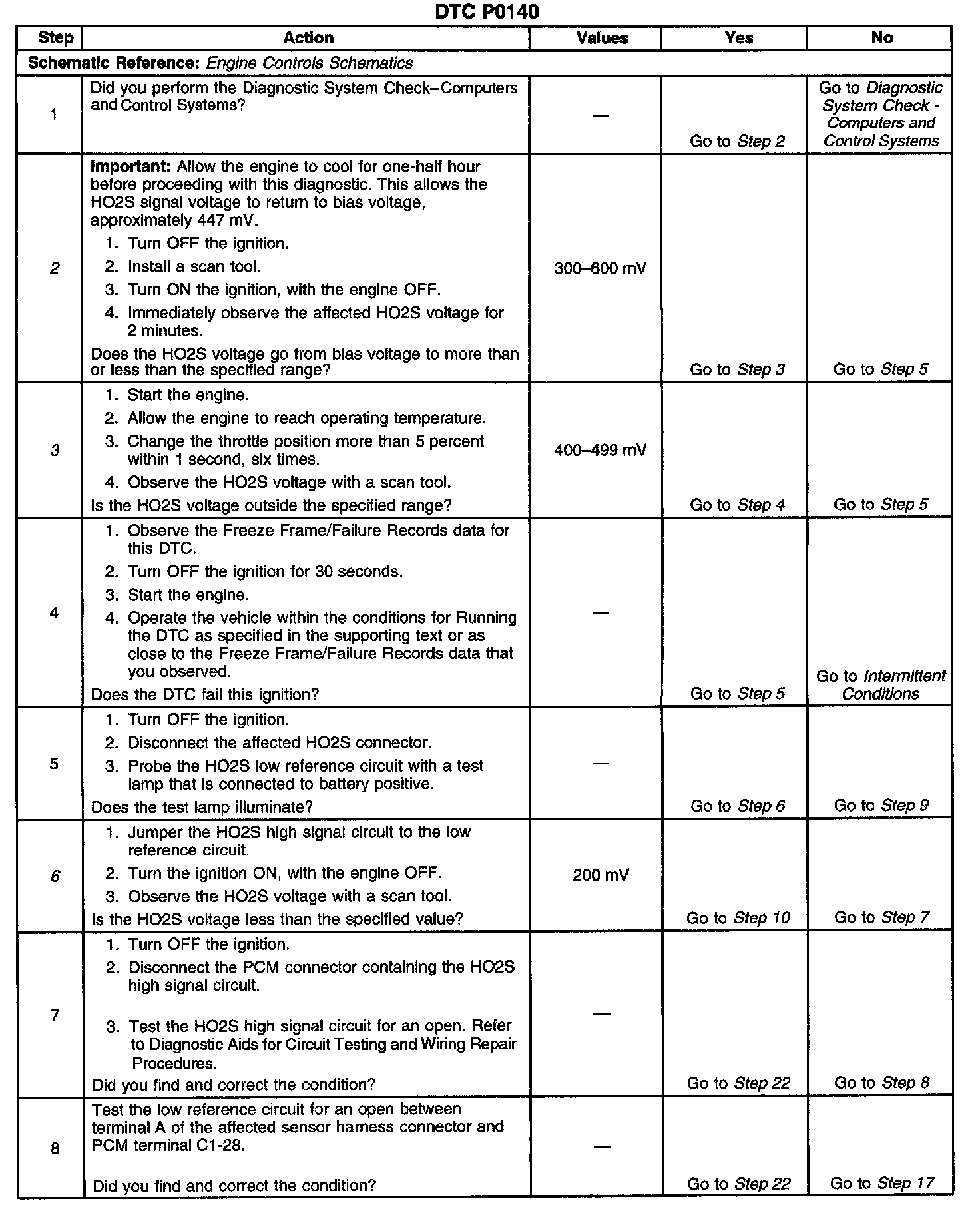 3. If the HO2S voltage is varying outside the specified range, the condition is not present.