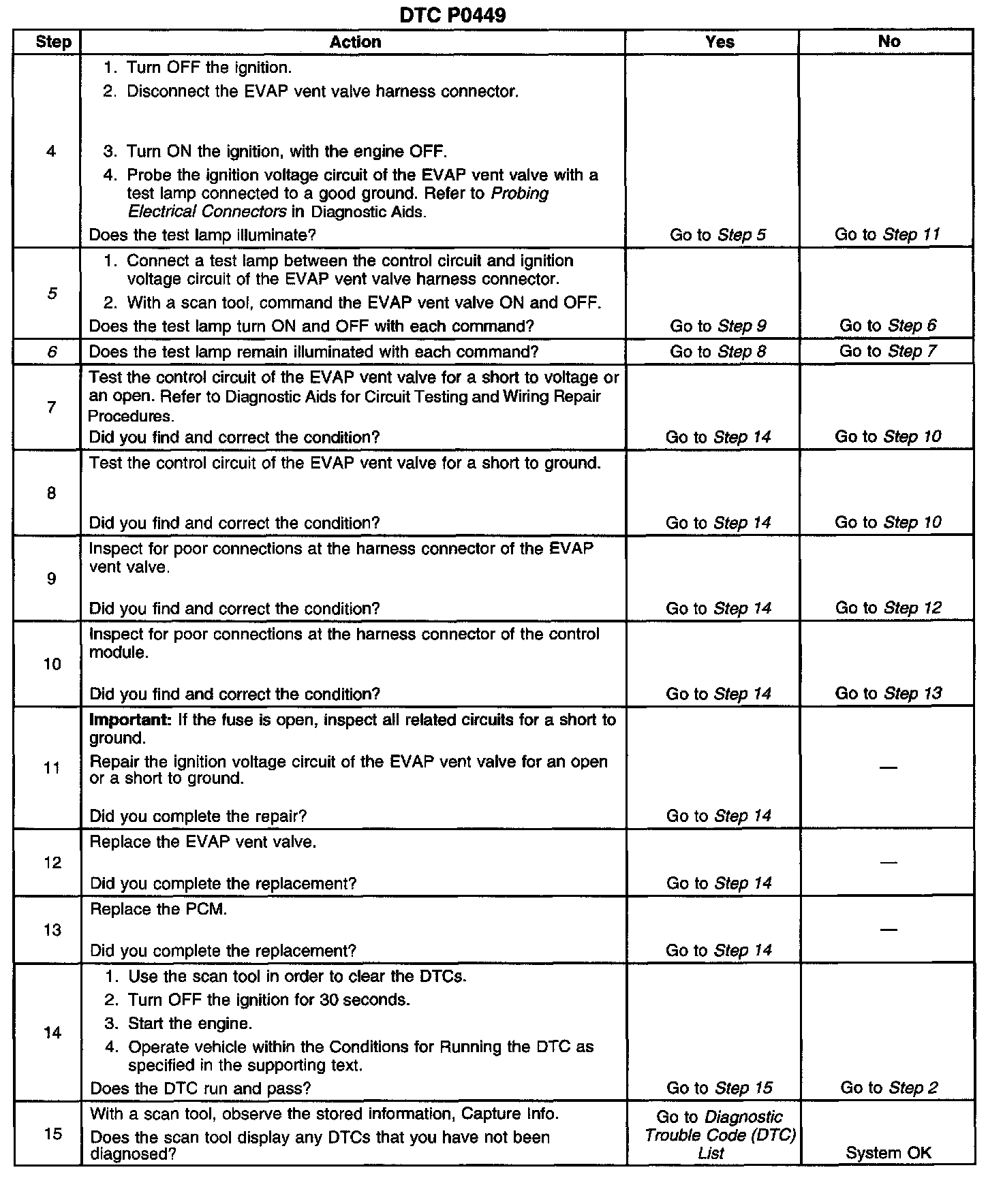 6. This step tests if the EVAP vent valve control circuit is grounded.